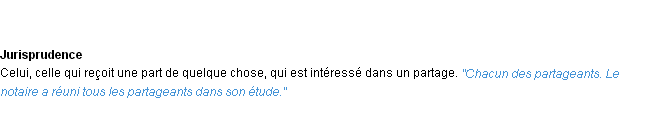 Ancienne définition académique pour le terme « partageant » (parue en 1835).