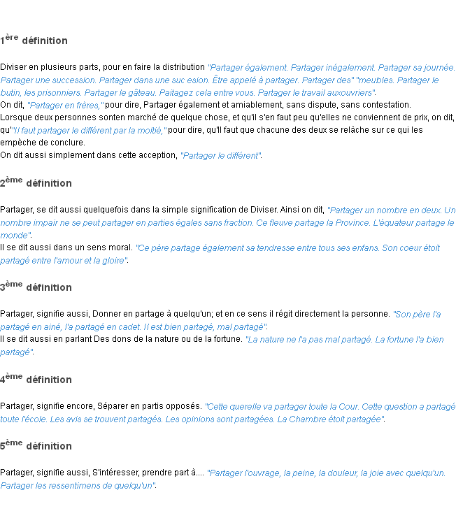 Ancienne signification éditée en 1835 pour le terme « partager » par l’Académie Française.