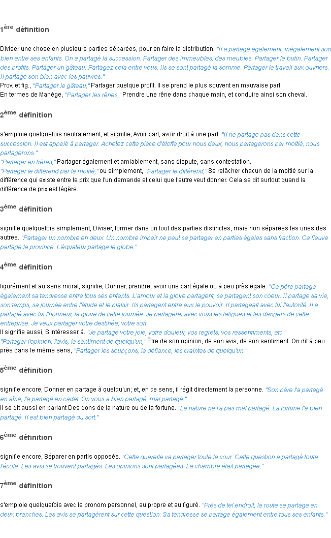 Définition du mot « partager » par l’Académie Française (édition de 1986).