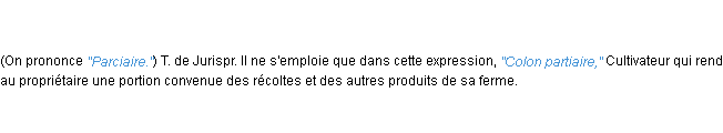 Ancienne définition « partiaire » du dictionnaire académique Français, parution de l’année 1835.
