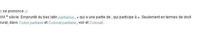Signification du terme « partiaire », parution de 1876 (dictionnaire le Littré).Merci à Edmond et Hilaire pour la numérisation du mot partiaire.