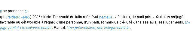 Ancienne signification éditée en 1835 pour le terme « partial » par l’Académie Française.