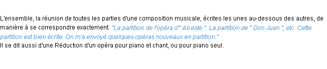 Définition « partition » du dictionnaire académique Français, parution de l’année 1986.
