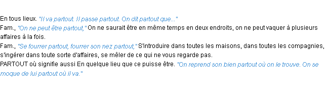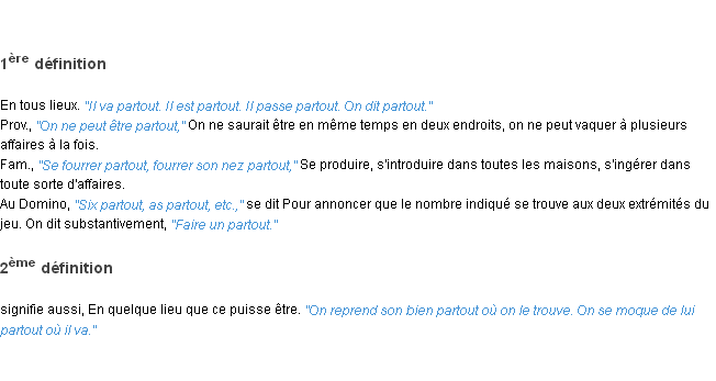 Définition de l’Académie Française (édition de 1986) pour le mot « partout ».