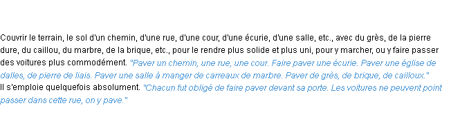 Signification éditée en 1932 pour le terme « paver » par l’Académie Française.