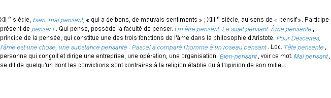 Ancienne signification du terme « pensant », parution de 1835, dictionnaire académique Français.