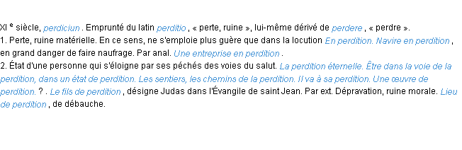 Définition du mot « perdition » par l’Académie Française (édition de 1932).