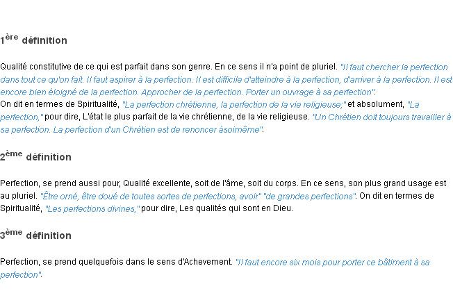 Signification du terme « perfection », parution de 1932, dictionnaire académique Français.