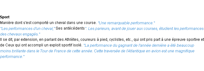 Définition du mot « performance » par l’équipe de la-definition.fr (édition de 2011).