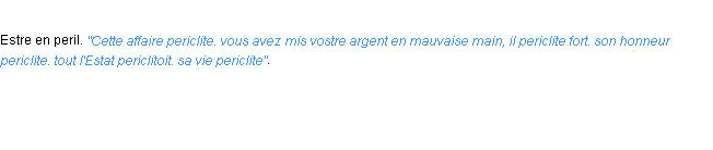 Ancienne signification développée en 1694 par l’académie Française (ACAD - 1694).Merci à Pascale et Noel pour la numérisation du mot pericliter.