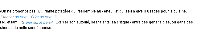 Ancienne signification éditée par l’Académie Française, année 1798.Merci à Brice et Suzanne pour la numérisation du mot persil.