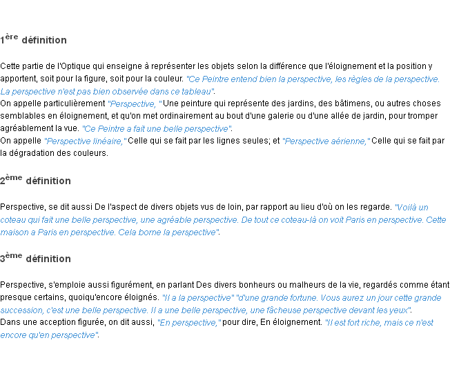 Définition « perspective » du dictionnaire académique Français, parution de l’année 1932.