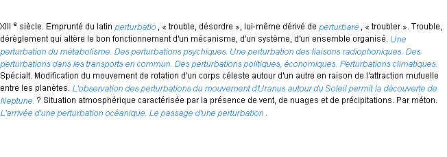 Ancienne signification issue du dico de l’Académie Française, parue en 1798.Merci à Laure et Sidonie pour la numérisation du mot perturbation.