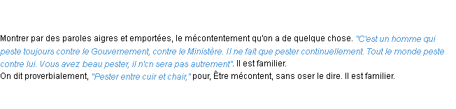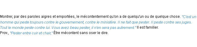 Définition du mot « pester » par l’Académie Française (édition de 1932).