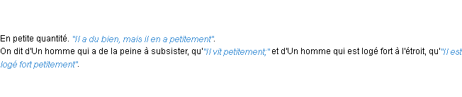 Définition de l’Académie Française (édition de 1932) pour le mot « petitement ».