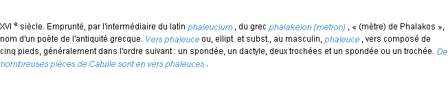 Définition d’Emile Littré (édition de 1876) pour le mot « phaleuce ».Merci à Placide et Rémi pour la numérisation du mot phaleuce.