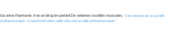 Signification du terme « philharmonique », parution de 1986, dictionnaire académique Français.