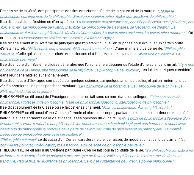 Ancienne signification du terme « philosophie », parution de 1835, dictionnaire académique Français.