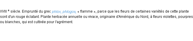 Définition du mot « phlox » par Emile Littré (édition de 1876).Merci à Célestine et Nadine pour la numérisation du mot phlox.