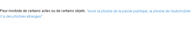 Définition « phobie » du dictionnaire académique Français, parution de l’année 1932.Merci à Baudouin et Jacques pour la numérisation du mot phobie.