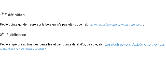 Ancienne signification issue du dico de l’Académie Française, parue en 1798.Merci à Léandre et Adrienne pour la numérisation du mot picot.