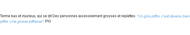 Ancienne définition de l’Académie Française (édition de 1835) pour le mot « piffre ».