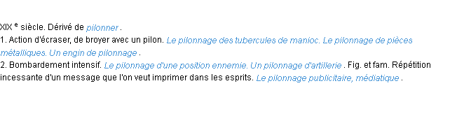 Définition « pilonnage » du dictionnaire académique Français, parution de l’année 1932.