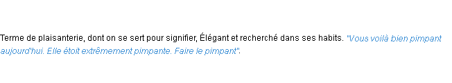 Ancienne définition développée dans dictionnaire académique, 1798.Merci à Luc et Amaury pour la numérisation du mot pimpant.
