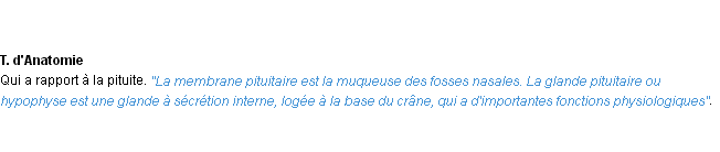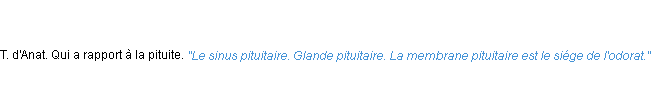 Ancienne définition de l’Académie Française (édition de 1798) pour le mot « pituitaire ».Merci à Mélissa et Madeline pour la numérisation du mot pituitaire.