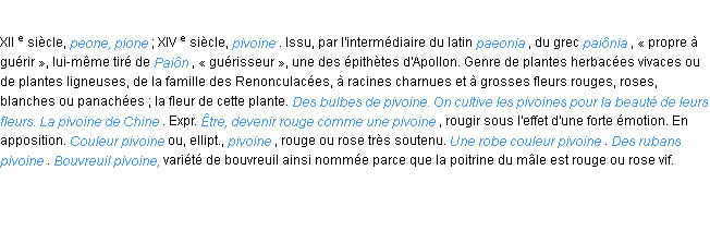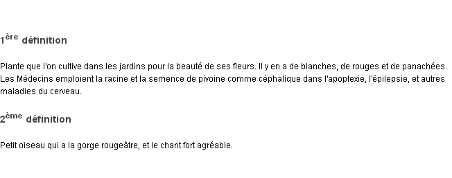 Signification éditée en 1932 pour le terme « pivoine » par l’Académie Française.