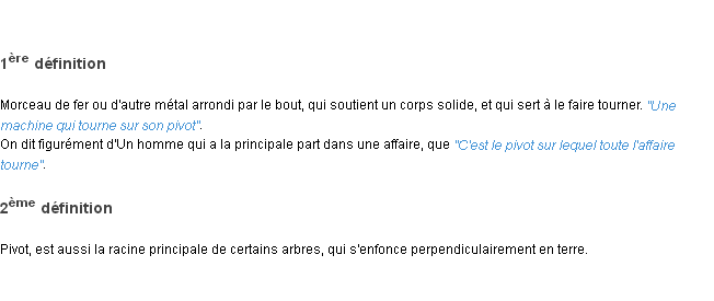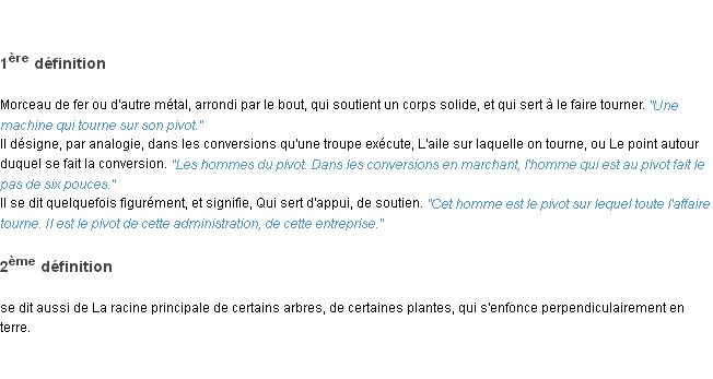 Ancienne définition académique pour le terme « pivot » (parue en 1835).