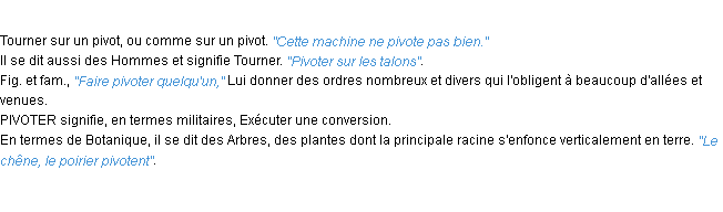 Définition académique pour le terme « pivoter » (parue en 1932).