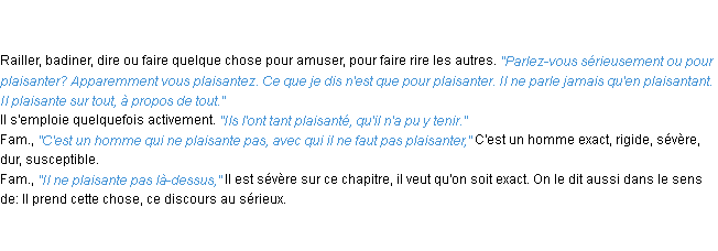 Ancienne signification éditée en 1835 pour le terme « plaisanter » par l’Académie Française.