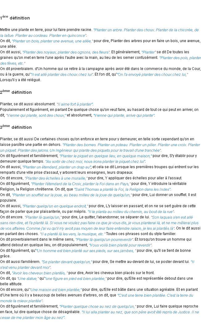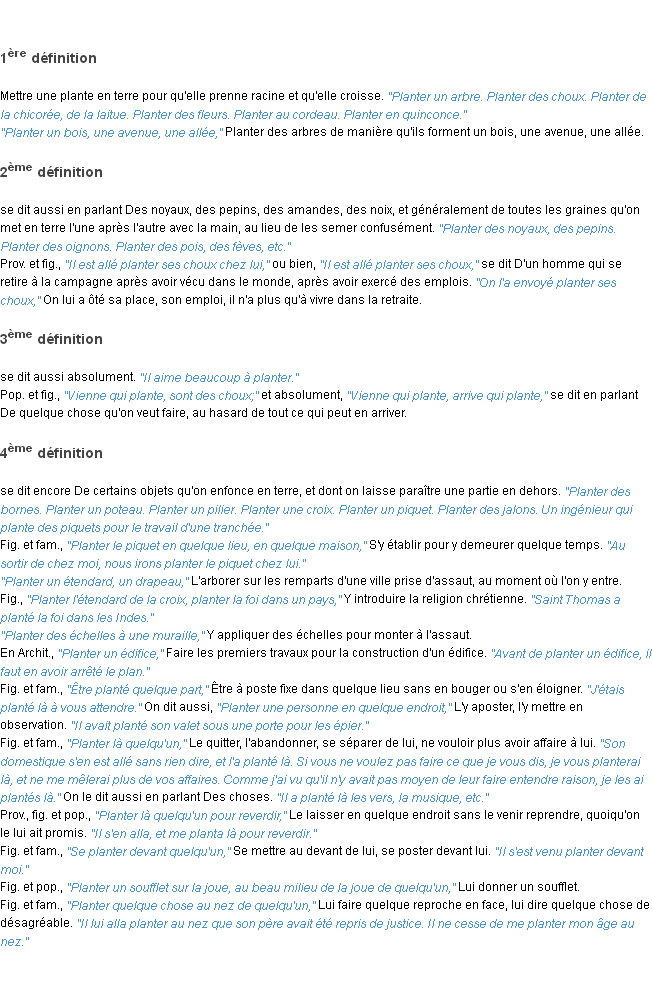 Définition académique pour le terme « planter » (parue en 1932).