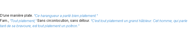 Ancienne signification issue du dico de l’Académie Française, parue en 1798.Merci à Jolie et Florentin pour la numérisation du mot platement.