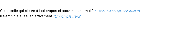 Ancienne signification éditée en 1835 pour le terme « pleurard » par l’Académie Française.