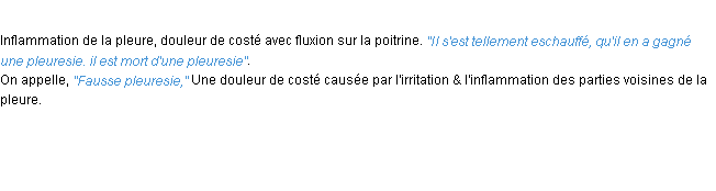 Ancienne signification éditée en 1694 pour le terme « pleuresie » par l’Académie Française.