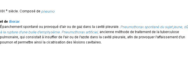 Signification éditée en 1932 pour le terme « pneumothorax » par l’Académie Française.