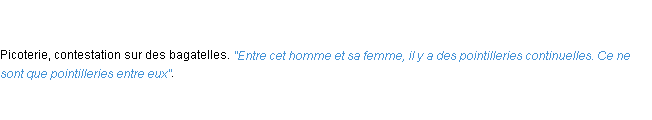 Ancienne signification éditée en 1835 pour le terme « pointillerie » par l’Académie Française.