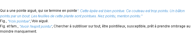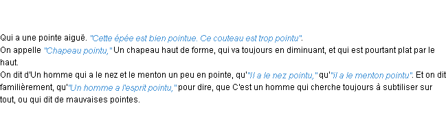 Signification du terme « pointu », parution de 1932, dictionnaire académique Français.