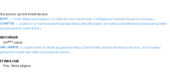 Définition développée dans dictionnaire d’Emile Littré (ancienne édition de 1876).Merci à Florentin et Thierry pour la numérisation du mot poisseux.