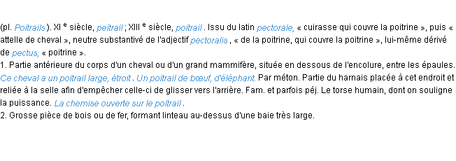 Ancienne définition de l’Académie Française (édition de 1798) pour le mot « poitrail ».