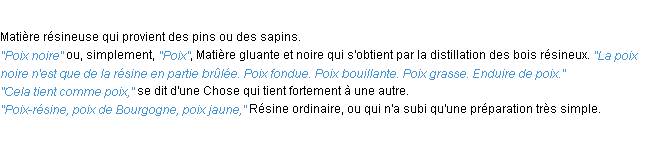 Ancienne définition académique pour le terme « poix » (parue en 1835).