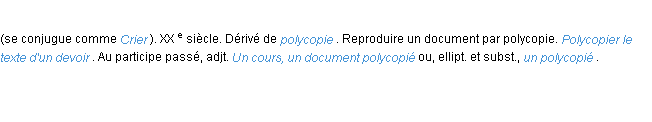 Définition du mot « polycopier » par l’équipe de la-definition.fr (édition de 2011).
