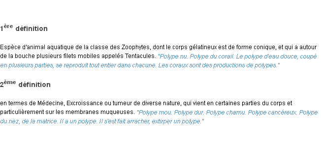 Ancienne définition développée dans dictionnaire académique, 1798.Merci à Noémie et Firmin pour la numérisation du mot polype.