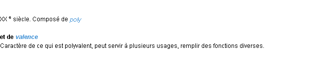 Définition du mot « polyvalence » (source wiktionary 2011).Merci à Inès et Didier pour la numérisation du mot polyvalence.