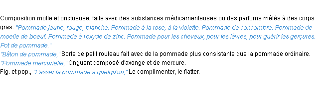 Ancienne définition académique pour le terme « pommade » (parue en 1835).