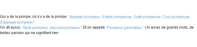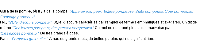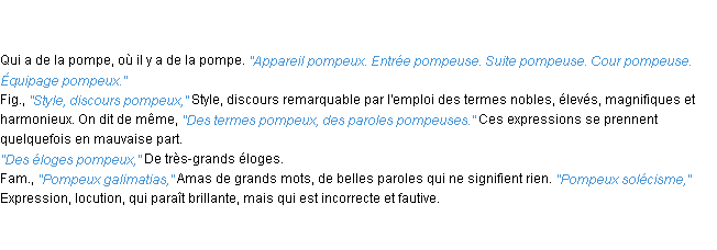 Ancienne définition « pompeux » du dictionnaire académique Français, parution de l’année 1835.