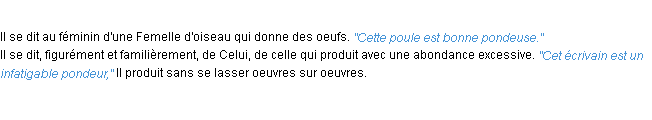 Ancienne définition du mot « pondeuse » par l’Académie Française (édition de 1835).