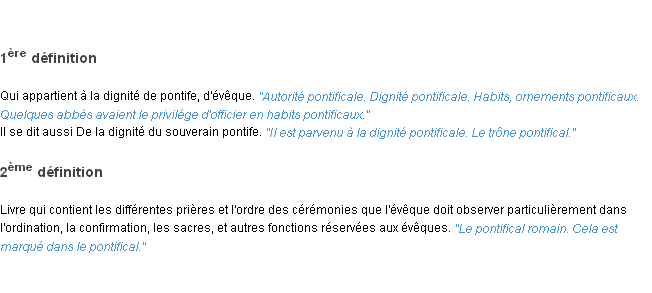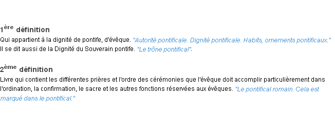 Signification éditée en 1932 pour le terme « pontifical » par l’Académie Française.